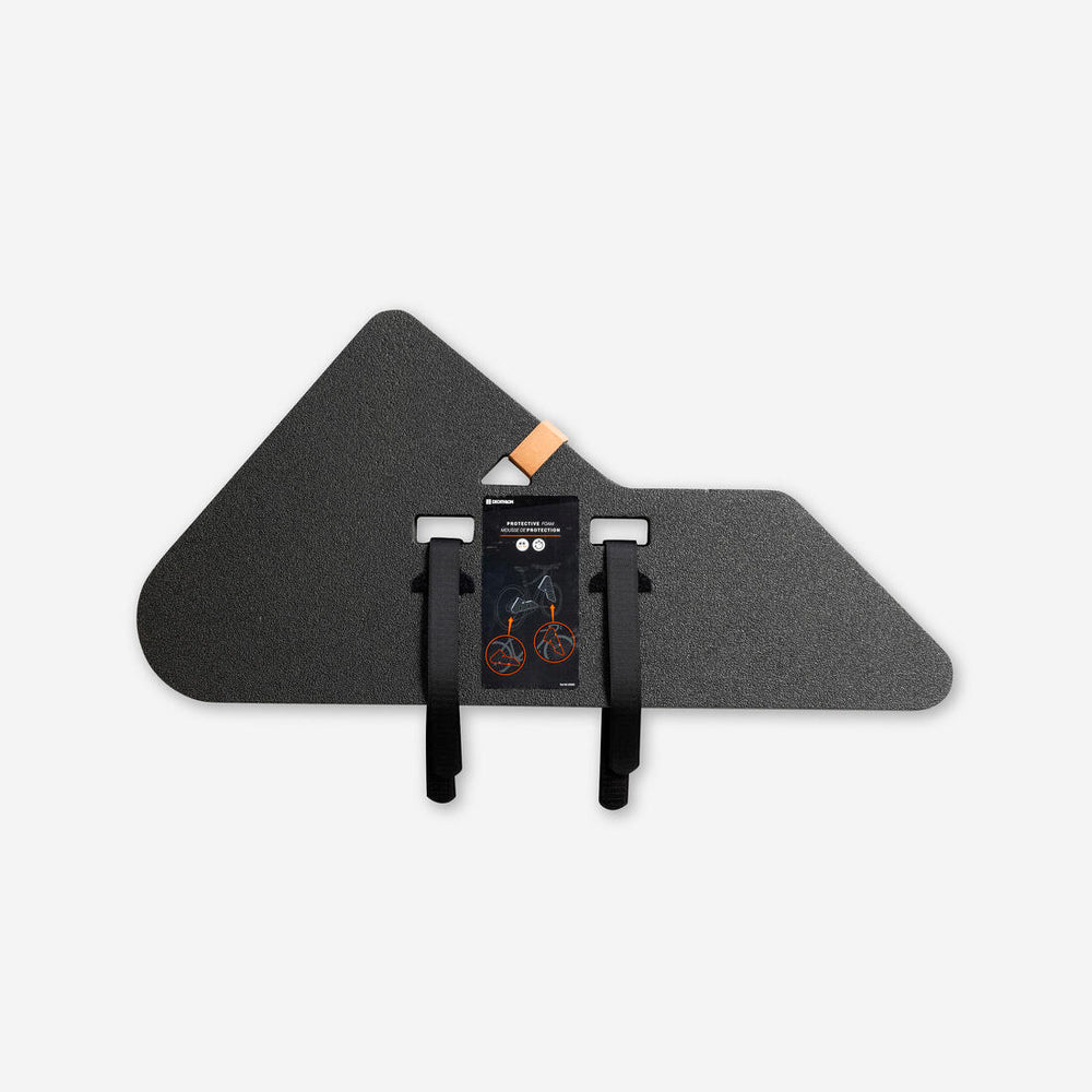 ملحق عملي لحماية الدراجة الخاصة بك على حامل دراجات. سهلة التركيب (على الشوكة والقوس السفلي) بشرائط ريب تاب اللاصقة.