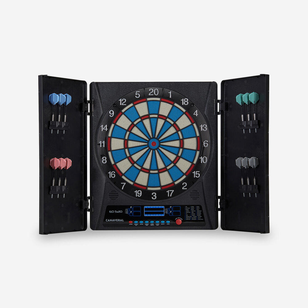 هل تبحث عن لوحة رماية إلكترونية تحسب النقاط والجهد الكهربائي؟ صُممت لوحة الرماية ED 520 المزودة بأربع شاشات من أجلك. دع السهام تثبت مهارتك.