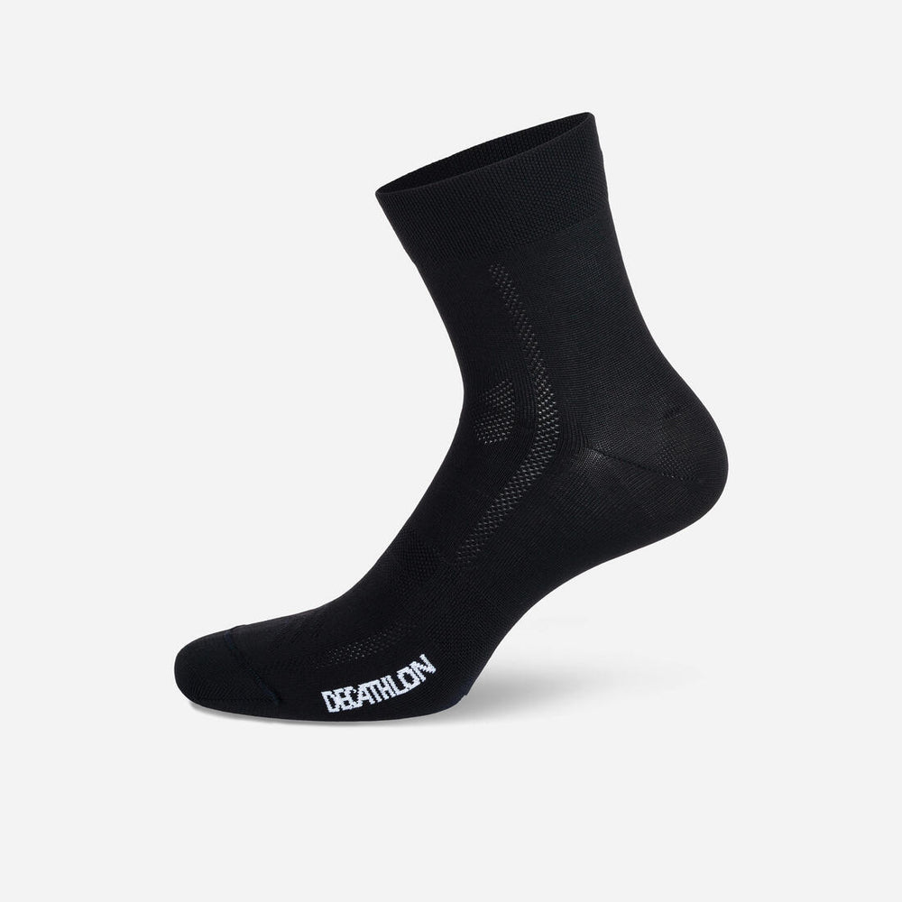 سواء كنت تستخدم دراجتك للمهام اليومية أو للسباق في المنافسات، فإن ركوب الدراجات يؤثر سلبًا على قدميك. يمكن أن تؤدي الحركة إلى الاحتكاك، والذي يمكن أن يكون مزعجًا للغاية، إلى جانب التعرق. هذا هو السبب في أن ارتداء الجوارب المصممة لركوب الدراجات الهوائية التي تزيد بشكل كبير من مستوى راحتك! تعمل هذه الجوارب بتوين B'Twin 500 على التخلص من العرق، مما يوفر الراحة أثناء ركوب الدراجة بانتظام بفضل القماش خفيف الوزن.