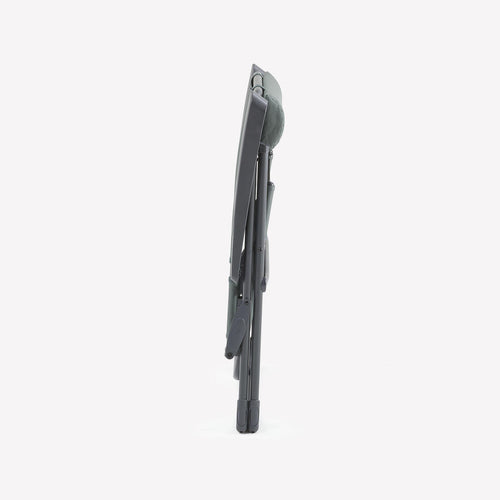 - لطي كرسي التخييم:- ارفع مسندي الذراعين.- أمسك الجزء العلوي من مسند الظهر بيد والمقعد باليد الأخرى، مع وضع إحدى قدميك على مسند الظهر. - قرّب المقعد من مسند الظهر..- - اضغط على الجزء المعدني في الخلف للطي.- أدر الكرسي بذراعين 90 درجة لنقله.