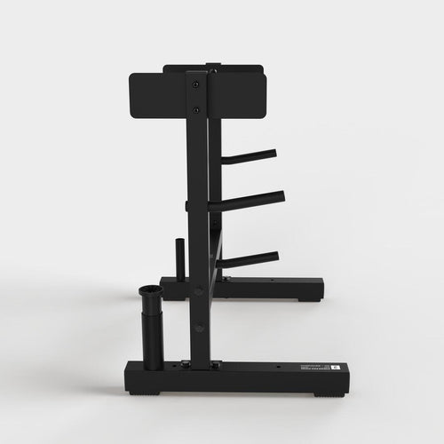 - قم بوضع أوزان الكيتل بيل والدمبلز (بحد أقصى ٨٠ كجم) على الراك الواحد. - يتسع كل أنبوب لـ ٥٠ كجم كحد أقصى من قرص الحديد بقطر ٢٨ مم أو ٥٠ مم. - يمكن وضع مصدات على الأنبوبين الخارجيين في المساحة بين كل أنبوب.- يمكنك أيضًا تثبيت عدد 2 بار (بقطر ٢٨ مم أو ٥٠ مم) في الجزء الخلفي من الراك.