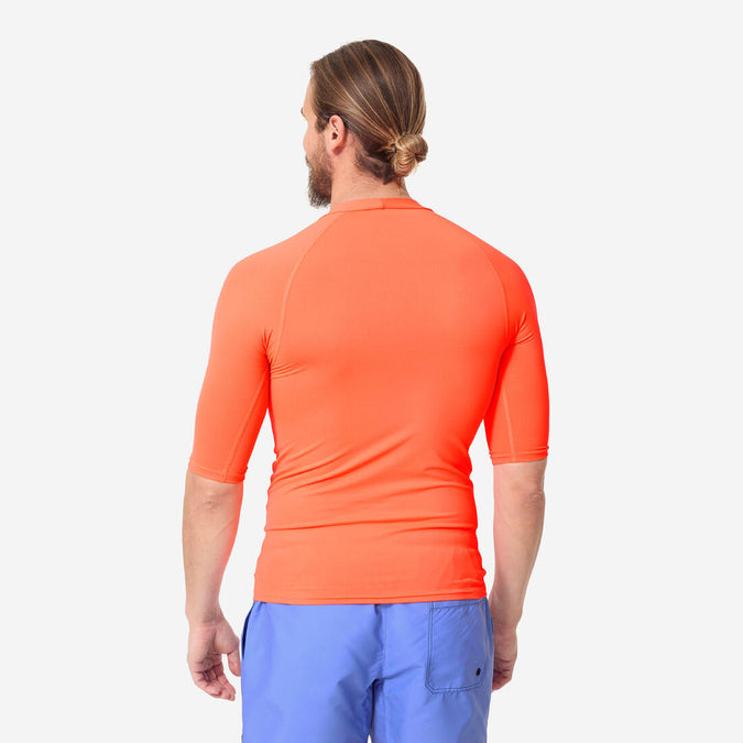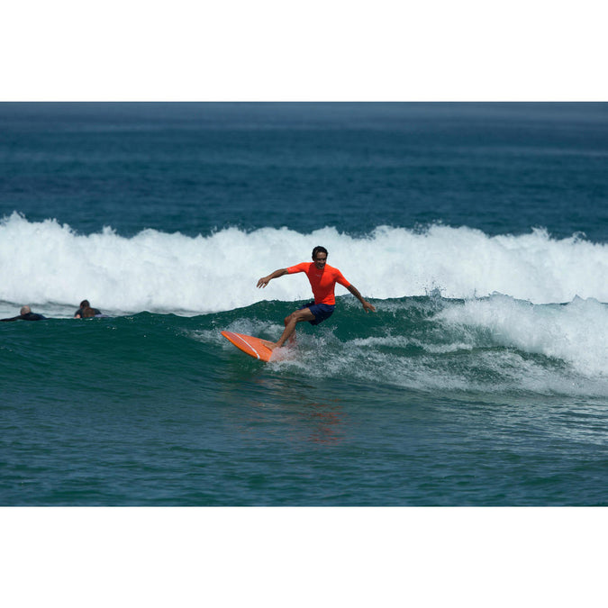 تيشيرت قصير الأكمام مقاوم للأشعة فوق البنفسجية للحماية من أشعة الشمس حتى في الماء، وللحد من التهيج عند ملامسته للوح. مزود برباط وبتصميم مناسب لمزيد من الثبات في الأمواج