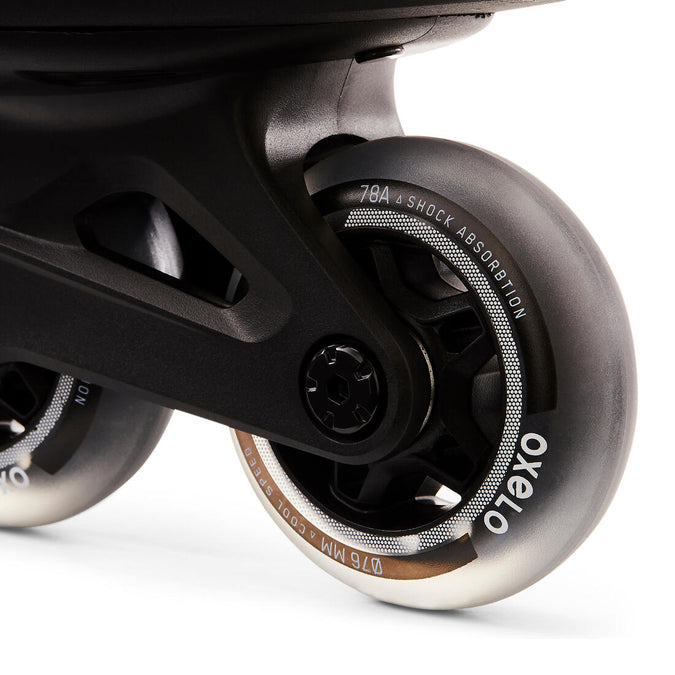 لا ، ليس مع Oxelo. توفر أحذية التزلج فيت أداءً مصممًا للمبتدئين بفضل عجلاتها مقاس 76 مم جنبًا إلى جنب مع رولمان بلي ABEC5. يوفر الجمع بين الإطار البلاستيكي والعجلات المطاطية المرنة نسبيًا ( 80- أ) توازنًا جيدًا بين امتصاص الاهتزازات والثبات. يمكن أن يسع الإطار أيضًا لعجلات مقاس 80 مم.