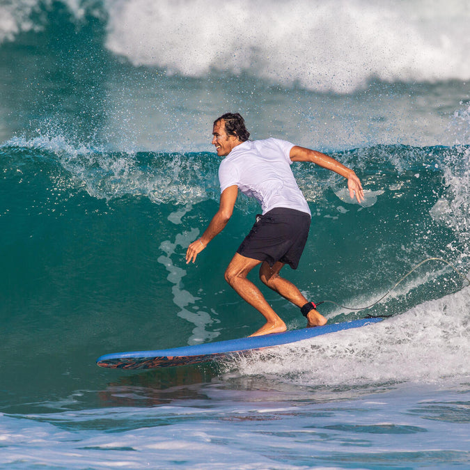 تيشيرت رجالي قصير الأكمام وللحماية من أشعة الشمس، حتى في الماء، وللحد من التهيج عند ملامسته للوح التزلج. تيشيرت بتصميم فضفاض تجعل من السهل ارتداؤه.