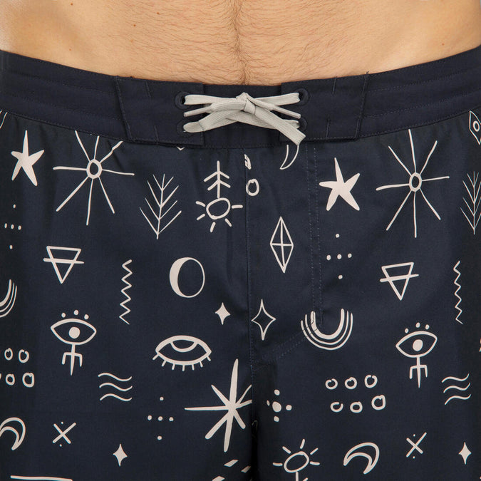 يتميز شورت ركوب الأمواج الطويل بحزام خصر شبه مرن بتصميم متناسق يحافظ على ثباتها في مكانها بإحكام عند السقوط في البحر.