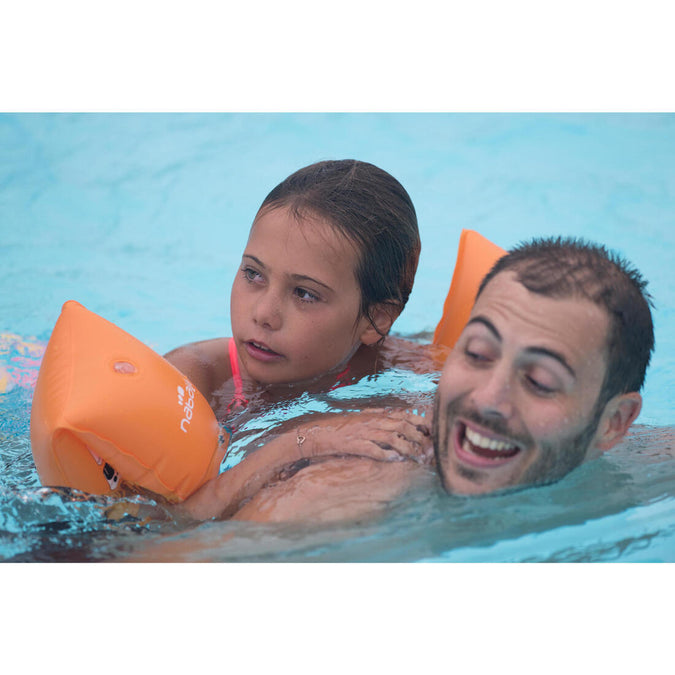 عوامات سباحة بها صمامات للضبط، فتحتين منفصلتين للنفخ بنفس المقاس بكل ذراع.. مثالية للأطفال لتعلم السباحة تحت إشراف مستمر من الكبار..