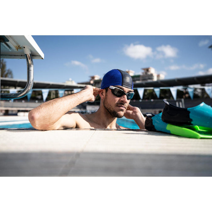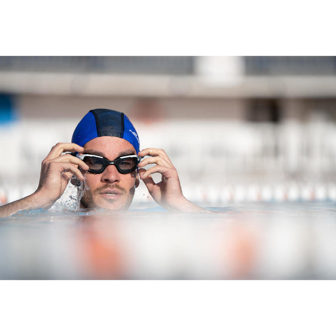 تتناسب نظارات السباحة هذه مع شكل وجهك دون الحاجة إلى شدها بشكل مبالغ. يمكن أن تسبب النظارات الضيقة شعورًا بعدم الراحة للسباح، حتى أنها يمكن أن تترك علامات قد تخلق ثقوبًا. ليس من الضروري أن تضغط على العدسات بيديك، لأنه يمكن لعملية الشفط الخفيف أن تكون كافية لجلسات سباحة دون دخول المياه. يجب أن تستقر الأشرطة بشكل مثالي على ارتفاع 2 إلى 3 سم فوق أذنيك. سيعمل هذا الوضع على تحسين إحكام النظارة على الوجه وراحتها.