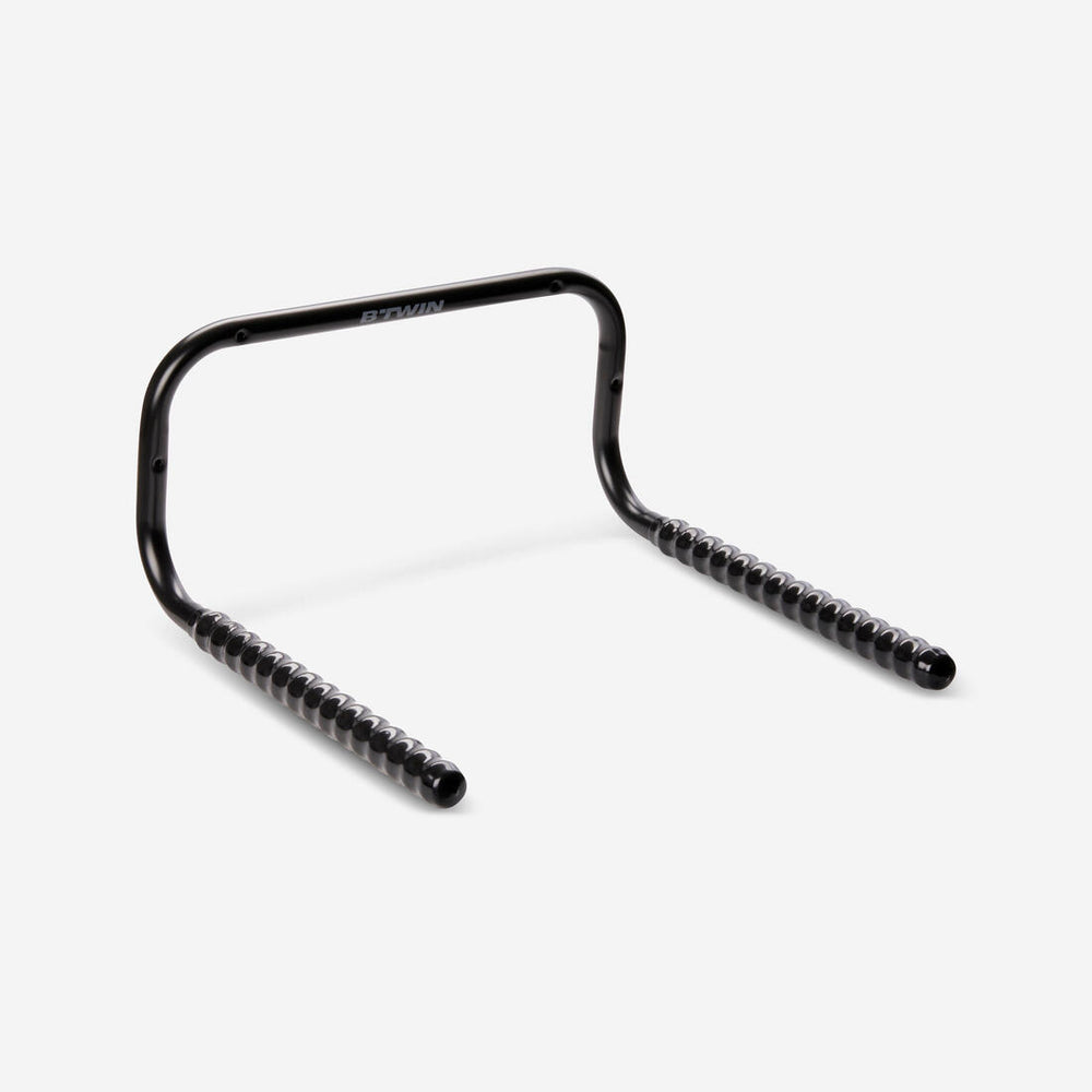 يشتمل حامل الدراجات هذا على 4 فتحات مثقوبة مسبقًا بحيث يمكنك تثبيته بسهولة على الحائط. نوصي بعدم تركيب حامل الدراجة أعلى الحائط لضمان توفير مساحة كافية للجزء العلوي من دراجتك (عمود المقعد والمقعد) ومنعك من رفع دراجتك أعلى من اللازم. تذكر أيضًا أن تترك مساحة كافية حول الجوانب وأسفل العجلات!