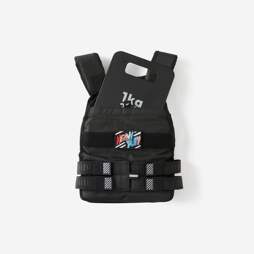 اضبط الوزن باستخدام ألواح 4 × 1 كجم مضافة إلى وزن السترة البالغ 6 كجم.