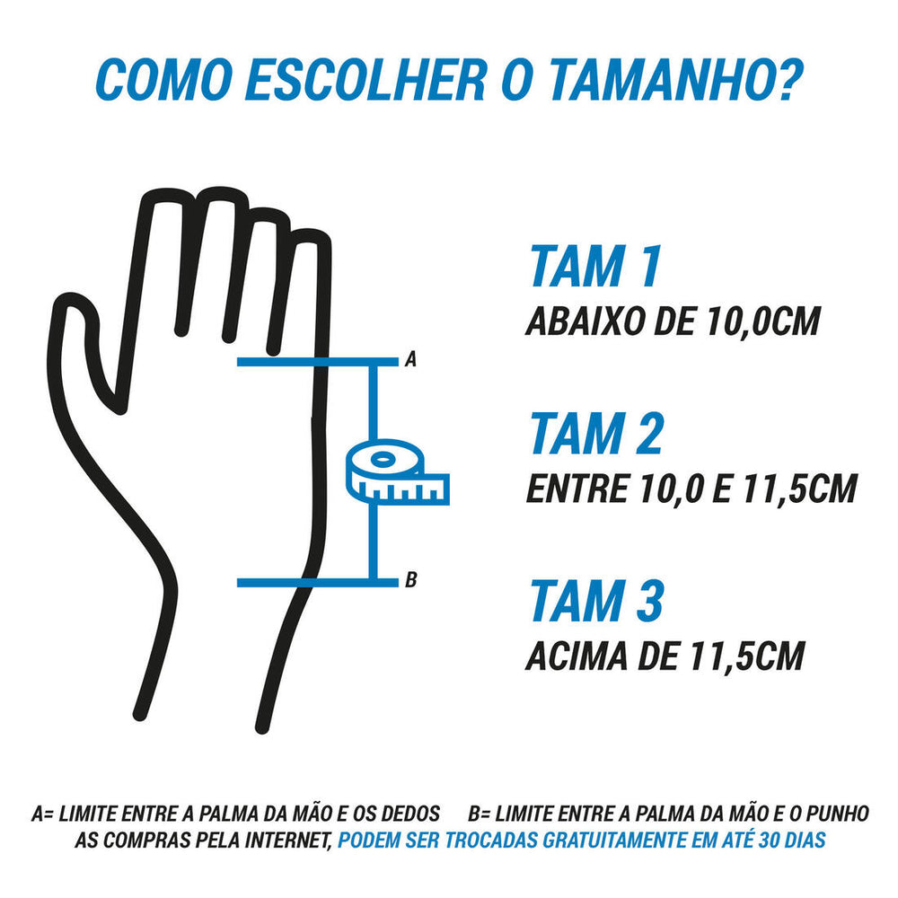 قم بقياس راحة يدك، من المعصم إلى طرف إصبعك الأوسط، المقاس رقم 1:10 سم - مقاس 2: من 10 سم إلى 11.5 سم، المقاس رقم 3: 11.5 سم