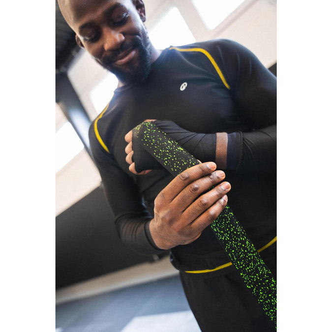 توفر أربطة الملاكمة المرنة حماية لكل من يديك وقفازاتك. بالنسبة ليديك، تُلف حول عظام مشط اليد والمعصمين لدعمهما. كما تقلل من الاحتكاك في المناطق المعرضة للاحتكاك المتكرر.\"\"بالنسبة للقفازات، فهي تمنع تعرّق اليدين من إتلافها، مما يُطيل عمرها الافتراضي.\"
