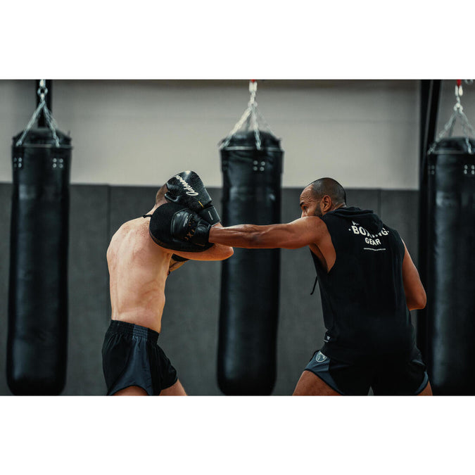 لابد من استخدام قفازات منحنية بوسادة أمر لا بد منه إذا كنت ترغب في تحسين أسلوبك.أنت تتدرب مع شريكك الذي يرتدي قفازات الصد والذي يظهر لك الأهداف المختلفة التي يجب ضربها، بينما تتحرك (إنه أكثر متعة وأكثر تحديًا من كيس اللكمات).سوف تتعلم مجموعات معينة وتكتسب الدقة والسرعة.إن تنوع التمارين التي يمكنك القيام بها باستخدام قفازات الصد يحفزك.
