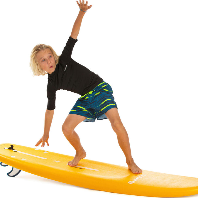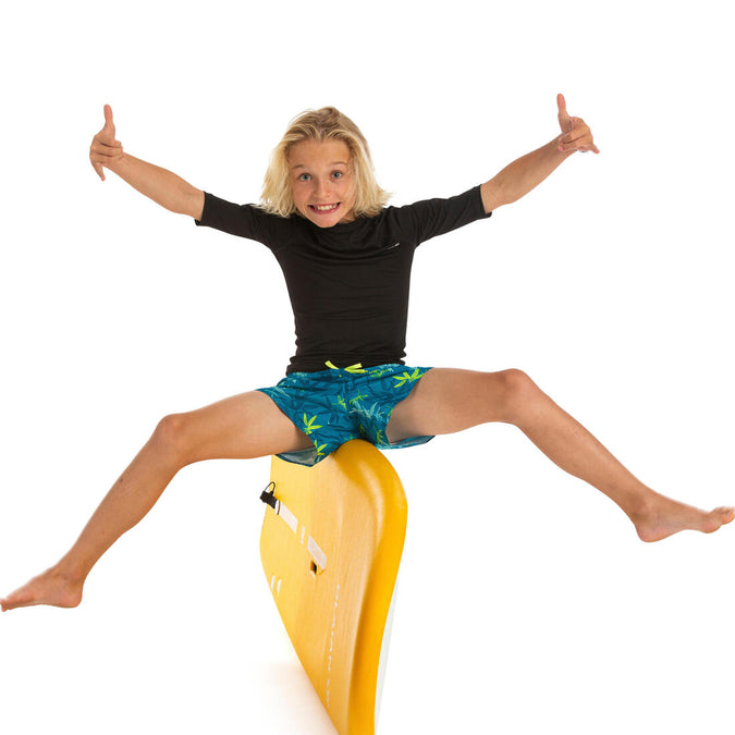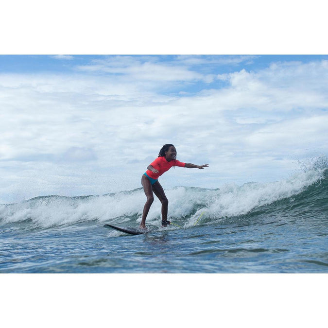 تيشيرت قصير الأكمام مقاوم للأشعة فوق البنفسجية للحماية من أشعة الشمس ويحد من الاحتكاك عند استخدام اللوح، حتى عند البلل. ذات قصة ضيقة للمزيد من الثبات في الأمواج.