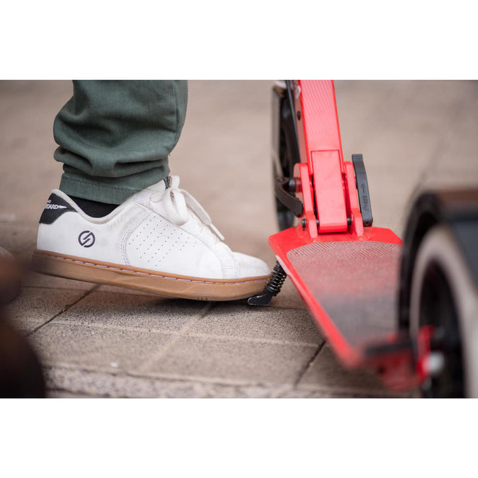 نوصيك بالتحقق من حالة السكوتر قبل وبعد كل رحلة. تذكر أن تتحقق من عدم وجود أي خلل أو شقوق أو حواف حادة. العجلات ورولمان البلي أجزاء معرضة للتآكل. تذكر أن تتحقق منها وتغيرها إذا لزم الأمر. يمكنك إصلاح وإطالة عمر السكوتر الخاص بك باستخدام قطع الغيار التي يمكن طلبها من متجر ديكاتلون المحلي.