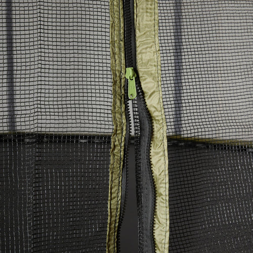 مزود بالوسائد الإسفنجية الواقية (بولي كلوريد الفينيل (PVC) الخالي من الفالات) أعلى النوابض والإطار المعدني (30 مم على الإطار و 30 مم على النوابض)) شبكة أمان من البولي إيثيلين: إغلاق بسحاب لضمان السلامة الكاملة. سطح قفز ناعم من البولي بروبلين مع معالجة مضادة للأشعة فوق البنفسجية لمتانة مثالية في الهواء الطلق إطار معدني من الصلب المجلفن بالغمس على الساخن ، مع معالجة مقاومة للتآكل أنابيب الإطار: القطر = 42 مم / السمك = 1.45 مم 72 من النوابض (الزنبرك)