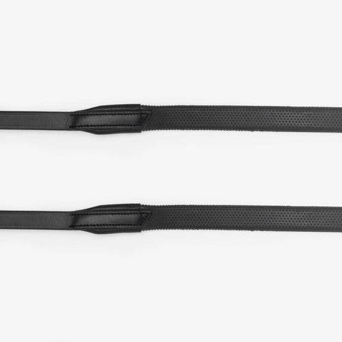 J’ai acheté ces rênes il y a 1 an. A raison de 3 montes par semaine elles sont devenues lisses au bout de 6 mois. Et cest la deuxième fois que j’en rachete , meme problème. Elle sont vraiment bien , bonne prise en main et souplesse mais vraiment ne tiennent pas sur le long terme c’est dommage.