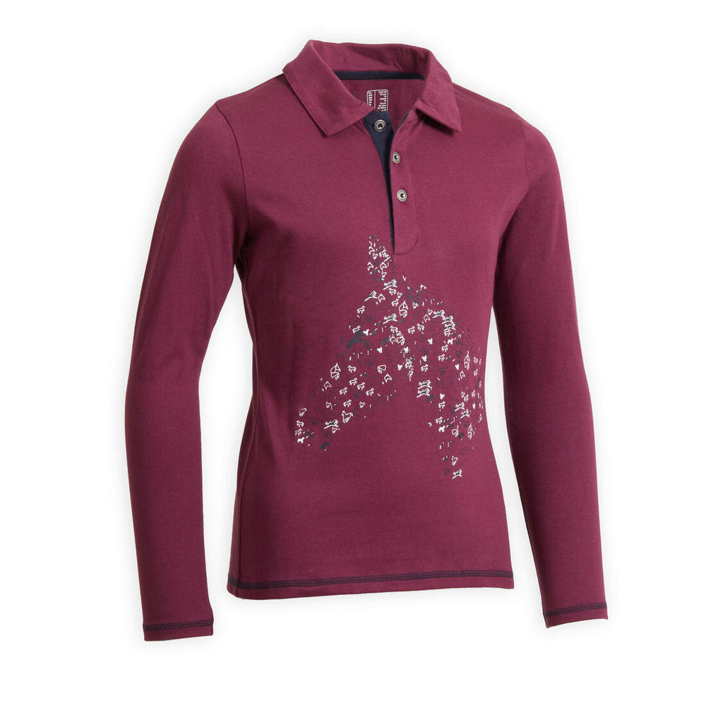 قميص بولو بأكمام طويلة للفروسية للبنات - برقوقي