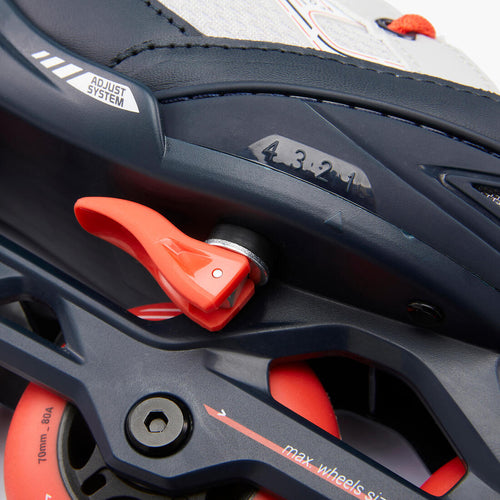 يسّهل حذاء التزلج الخفيف من تعلم الطفل عليه. يزودك بانزلاق مريح. توفر العجلات بقطر 70 مم وبدرجة تحمل 80 وبحلقات \"آيه بي إيه سي ثري\" حلاً جيدًا وسطًا بين الانزلاق والتحكم. تم تجهيز أحذية التزلج لدينا بفرامل مطاطية كلاسيكية يمكنك وضعها على القدم اليمنى أو اليسرى. سدادات احتياطية متوفرة في المتاجر.