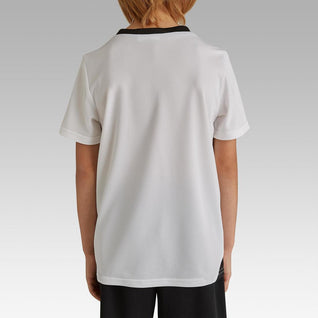 لمساعدة طفلك على اتخاذ خطواته الأولى في ملعب كرة القدم، قمنا بتصميم قميص المصنوع من قماش خفيف يسمح بالتهوية.