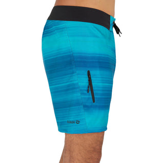 شورت قصير ذات قماش مصنوع من المطاط لتسهيل الحركة عند ركوب الأمواج. حزام خصر مسطح لثبات آمن وراحة على لوح ركوب الأمواج. جيب جانبي بسحاب