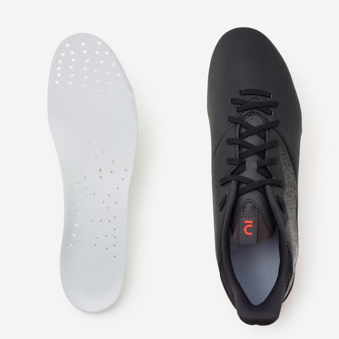 أحذية كرة القدم هذه هي نتيجة العديد من الخيارات التي تم إجراؤها جميعها بنفس الهدف: لجعلها من أحذية كرة القدم الأكثر راحة بهذا السعر!الجزء العلوي مصنوع من البولي يوريثان الناعم الموجود على مقدمة القدم، وبطانة من نسيج شبكي على الكعب، ونعل داخلي مُشكَّل مسبقًا، ولسان عريض مثبت في القاعدة لا يلتوي ويمنح القدم الراحة والدفء ويثبت قدمك داخل الحذاء أثناء اللعب. قاعدة الحذاء البارزة و الجزء الخلفي المرتفع عند الكعب يساعد على دعم قدمك وإبقائها في مكانها بشكل جيد.