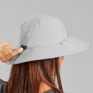معايير الحماية من الأشعة فوق البنفسجية للقبعات محددة للغاية: يجب أن يكون القماش بالطبع مضادًا للأشعة فوق البنفسجية (مؤشر UPF أكبر من 50) ، لكن هذا لا يكفي للادعاء بأن المنتج النهائي مضاد للأشعة فوق البنفسجية. يجب أن يكون للقبعة حافة واسعة وغطاء يحمي الوجه والجزء الخلفي من الرقبة بشكل كامل. تلبي قبعة Trek 500 هذه المتطلبات حتى تتمكن من المشي براحة بال تامة: أنت محمي تمامًا!