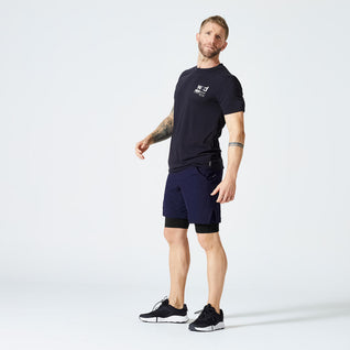 تيشيرت رياضي بنسيج مسامي للرجال بقصة سلم فيت وياقة مستديرة لتمارين الكروس