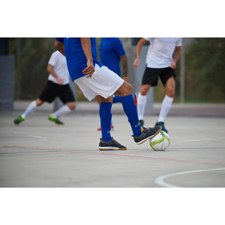 توفر أحذية التدريب الرياضية مقاومة كبيرة للتآكل أثناء لعب كرة الصالات على الأسطح الكاشطة (الأسمنت والأسفلت) ، وذلك بفضل المواد الخاصة التي تحمي الحذاء من التآكل. تم تصميم حذاء كرة الصالات خصيصًا لتخفيف الارتدادات الناتجة عن الصدمات بالأرضية. دمجنا بين بطانة الكعب الدائرية ونعل كبير سميك بطول الحذاء بالكامل. يعزز هذا من راحة الحذاء مع تقليل موجات الصدمات الناتجة عن الارتطام بالأرض.