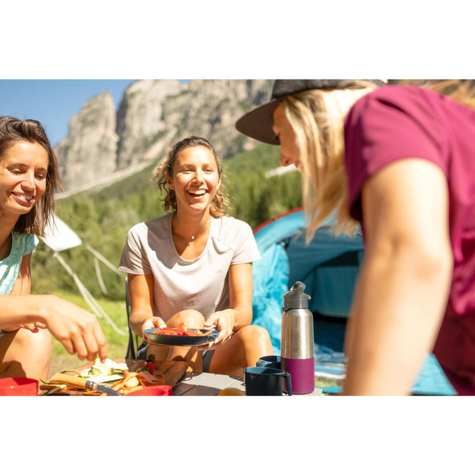 تلبي منتجاتنا وموادنا معايير ملامسة الطعام المعمول بها. لا تحتوي على بيسفينول أ (BPA) وفقًا للوائح الفرنسية المعمول بها.لقد اخترنا استخدام الفولاذ المقاوم للصدأ 18/8 (304) لجسم القارورة، المعروف بالحفاظ على سلامة الطعام وله من البولي بروبيلين المقاوم للحرارة والصدمات.