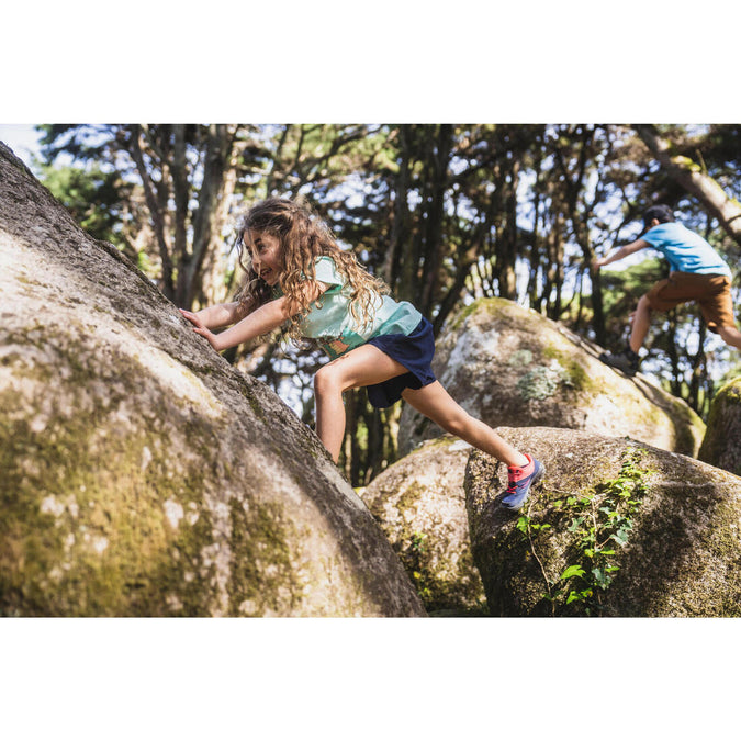 لممارسة الهايكنج، لا تتردد في الحصول على مقاس أكبر من مقاس حذاء طفلك المعتاد. سيضمن ذلك الراحة المثلى أسفل القدم ويمنع اصطدام أصابع القدم بالحذاء. نصيحة: حافظ على الأظافر قصيرة، وقبل نزول أي منحدر، تأكد من تثبيت لاصق الفيلكرو و/ أو الأربطة بشكل صحيح لمنع القدم من الانزلاق إلى الأمام في الحذاء.