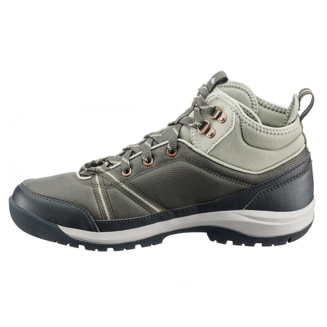 كيف تكون نعال أحذية المشي النسائية nh100 mid wp ثابتة على المسارات؟
