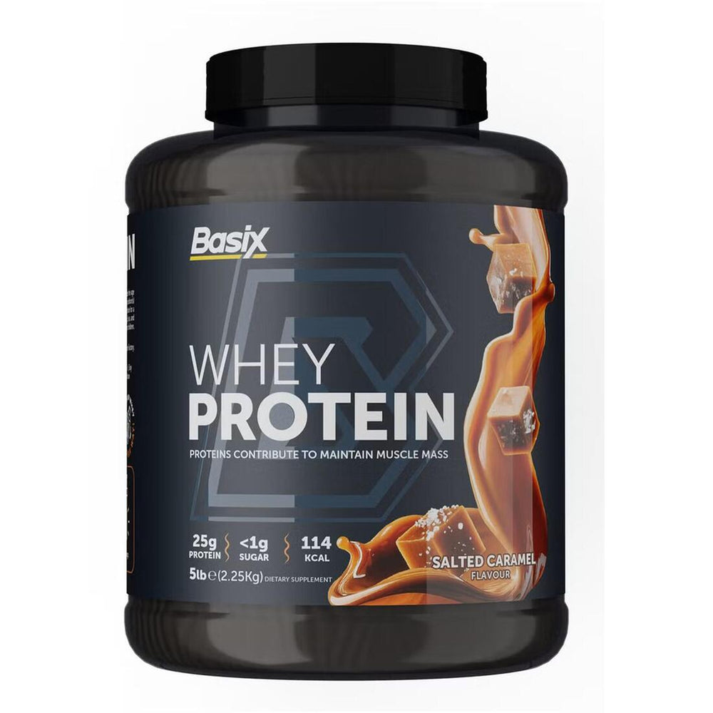 تركيبة تعتمد على بروتين مصل اللبن نكهة الكراميل المملح حجم كبير 5 رطل سهل الخلط والتحضير مناسب للاستخدام اليومي