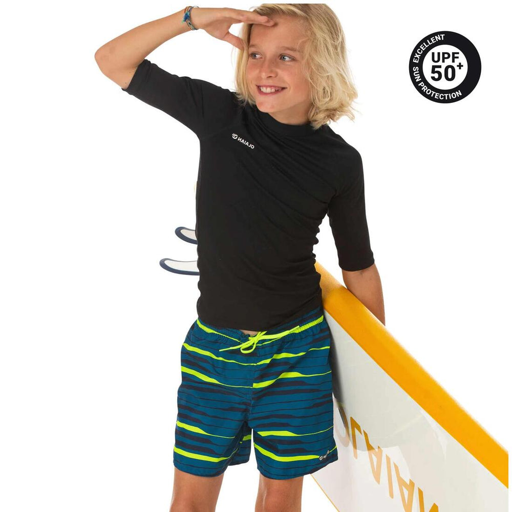 تيشيرت قصير الأكمام مقاوم للأشعة فوق البنفسجية للحماية من أشعة الشمس ويحد من الاحتكاك عند استخدام اللوح، حتى عند البلل. ذات قصة ضيقة للمزيد من الثبات في الأمواج.