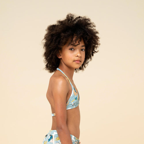 صممنا هذه المايوه (برا) على شكل مثلث ليناسب الفتيات الصغيرات بفضل شريطي الرقبة والظهر اللذين يمكن تعديلهما.