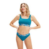 سواء كنت بجانب حمام السباحة أو على الشاطئ، فإن بيكيني السباحة هذا ذو اللون الأزرق المخضر يضفي لمسة من السحر الرياضي على محيطك ويتضمن حزام خصر أنيق بطبعة أوراق الشجر وحزام سفلي.