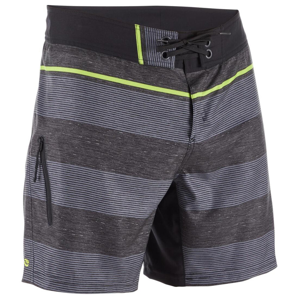 في رياضة ركوب الأمواج وقوفًا أو الاستلقاء على لوح ركوب الأمواج بشكل أفقي، هناك جهد وضغط كبير على الساقين، لذا يجب ألا تقيد ملابس ركوب الأمواج المخصصة للرجال حركتهم أو عند السباحة. يمنحك نسيجه المرن الذي يتمدد في 2 أو 4 اتجاهات مرونة وحرية الحركة. شورت ركوب الأمواج 500 مصنوع من نسيج مرن يتمدد في 2 اتجاهين.