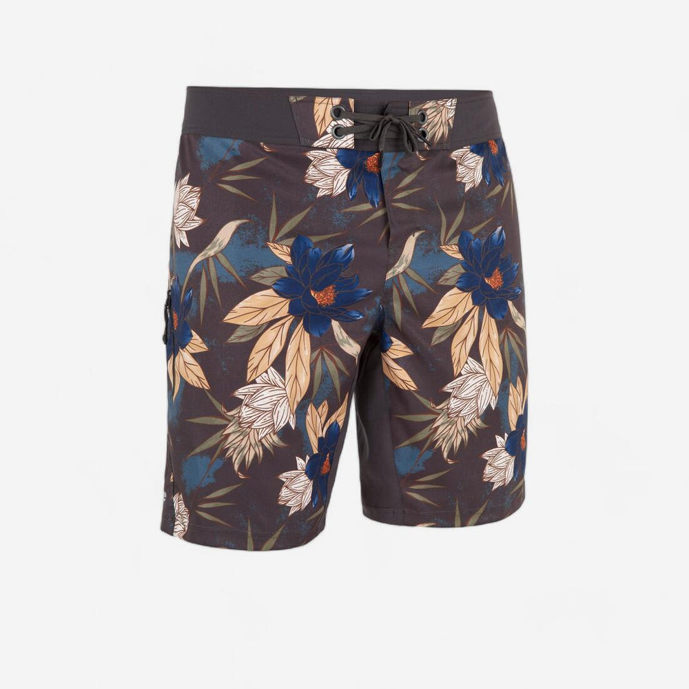 شورت بقماش مطاطي ثنائي الاتجاه لتسهيل الحركة عند ركوب الأمواج. حزام خصر مسطح لثبات آمن وراحة على لوح ركوب الأمواج. جيب جانبي بسحاب