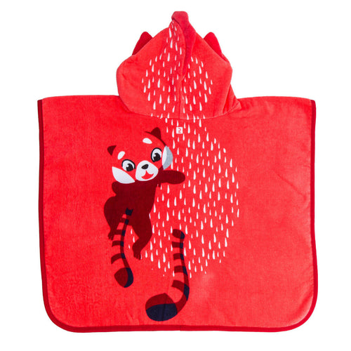 منشفة بونشو بغطاء للرأس للأطفال والرضع - أحمر بطبعة الباندا