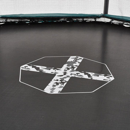 مزود بالوسائد الواقية (بولي كلوريد الفينيل (PVC) الخالي من الفالات) أعلى النوابض والإطار المعدني (30 مم على الإطار و 20 مم على النوابض)) شبكة أمان من البولي إيثيلين: إغلاق بسحاب لضمان السلامة الكاملة.بساط قفز ناعم من البولي بروبيلين مع معالجة مضادة للأشعة فوق البنفسجية لمتانة مثالية في المناطق المفتوحة. إطار معدني من الصلب المجلفن بالغمس على الساخن ، مع معالجة مقاومة للتآكل أنابيب الإطار: القطر = 38 مم / السمك 1.35 مممزود بـ64 زنبركًا
