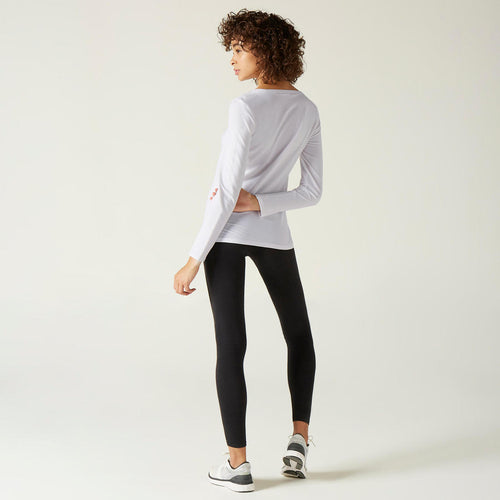 تيشيرت رياضي قطن بأكمام طويلة للياقة البدنية - رمادي مرقش