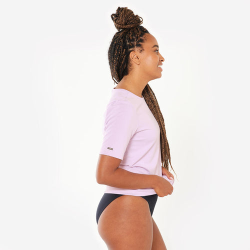 تيشيرت نسائي قصير الأكمام لركوب الأمواج بنسيج يحمي من الأشعة فوق البنفسجية