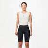 المنطقة المقواة ضيقة نسبيًا بين الأرجل وتستخدم مجموعة خياطة متعرجة من أجل منع التهيج / الاحتكاك أثناء التبديل على الدواسات.تأتي البطانة الإسفنجية المرنة بكثافة 100 كجم/ م³ وسمك 13 مم. نسيج مرن يتمدد في اتجاهين، مما يعني أنها تناسب مقاس أي راكبة دراجة.