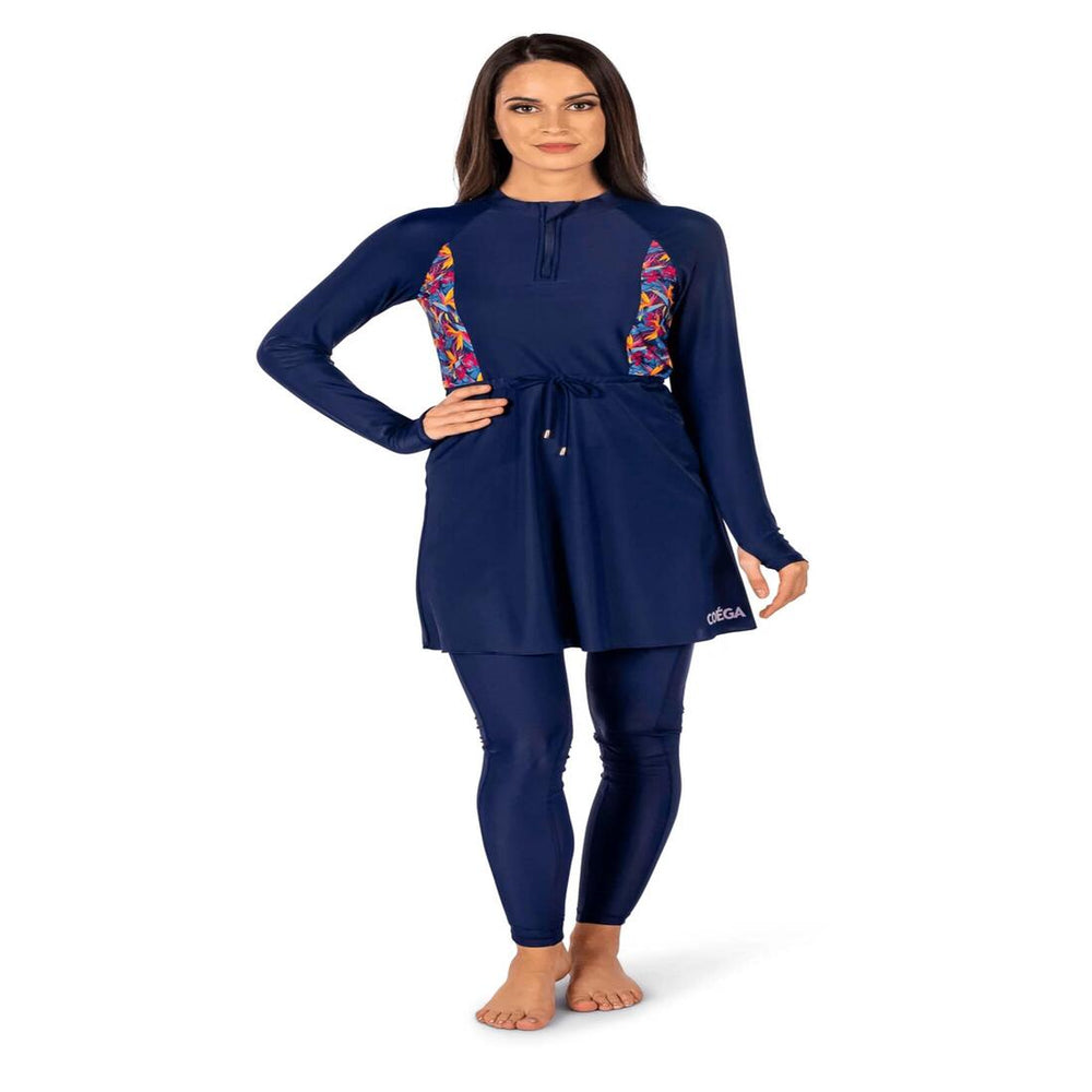 طقم سباحة محتشم بتنورة للسيدات من كويغا من قطعتين - كحلي تيل تروبيكال