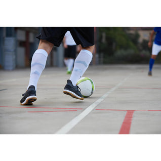 توفر أحذية التدريب الرياضية مقاومة كبيرة للتآكل أثناء لعب كرة الصالات على الأسطح الكاشطة (الأسمنت والأسفلت) ، وذلك بفضل المواد الخاصة التي تحمي الحذاء من التآكل. تم تصميم حذاء كرة الصالات خصيصًا لتخفيف الارتدادات الناتجة عن الصدمات بالأرضية. دمجنا بين بطانة الكعب الدائرية ونعل كبير سميك بطول الحذاء بالكامل. يعزز هذا من راحة الحذاء مع تقليل موجات الصدمات الناتجة عن الارتطام بالأرض.