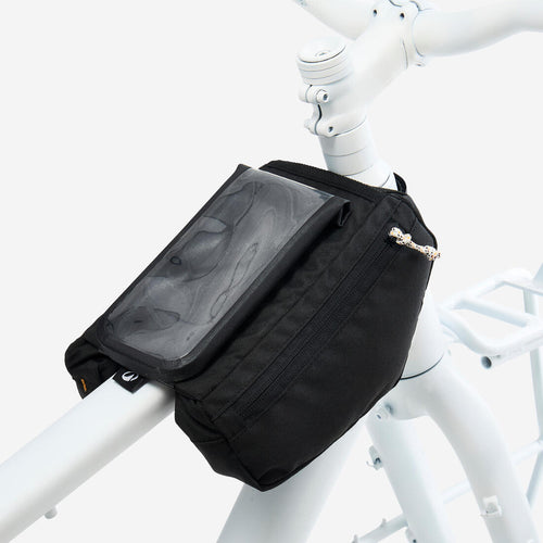 حقيبة بجيب للجوال لركوب للدراجة سعة 2×1 لتر- تُثبت على الهيكل - أسود