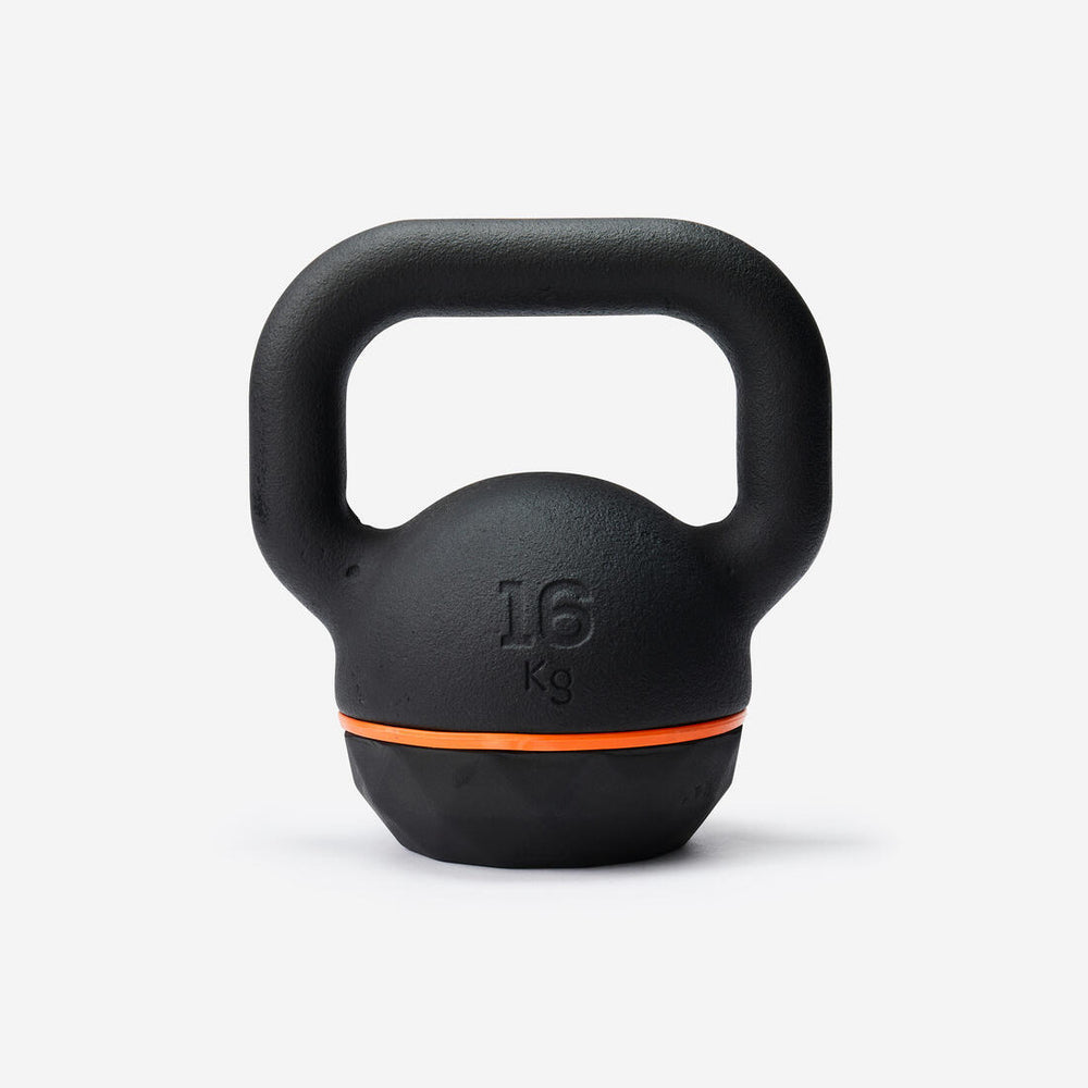 أوزان كيتل بيل بقاعدة مطاطية 16 كجم وهيكل من الحديد الزهر المعاد تدويره جزئياً.