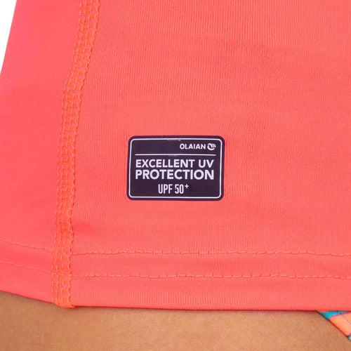 تيشيرت قصير الأكمام مقاوم للأشعة فوق البنفسجية للحماية من أشعة الشمس ويحد من الاحتكاك عند استخدام اللوح، حتى عند البلل. ذات قصة ضيقة للمزيد من الثبات في الأمواج.