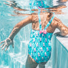 مع أنماطه الملونة والقوس في الخلف، يتحرك هذا المايوه المكون من قطعة واحدة مع الفتيات الصغيرات أثناء اكتشافهن للماء لأول مرة.