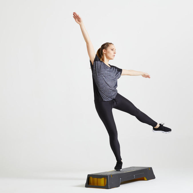 تيشيرت نسائي فضفاض وبرقبة مستديرة لتمارين الكارديو واللياقة - أسود / رمادي مرقش