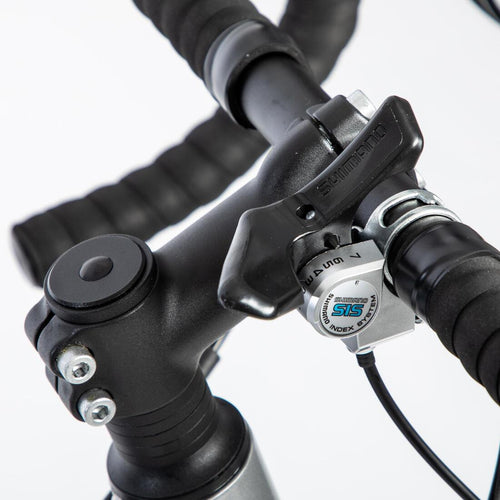 تتغير السرعة باستخدام مبدل السرعة شيمانو A050 ذو 7 سرعات على المقود. مريحة للغاية. تغيير السرعات دون ترك الجزء العلوي من المقود. تناسب هذه الرافعة ذات الشكل الهندسي راحة يدك تمامًا.